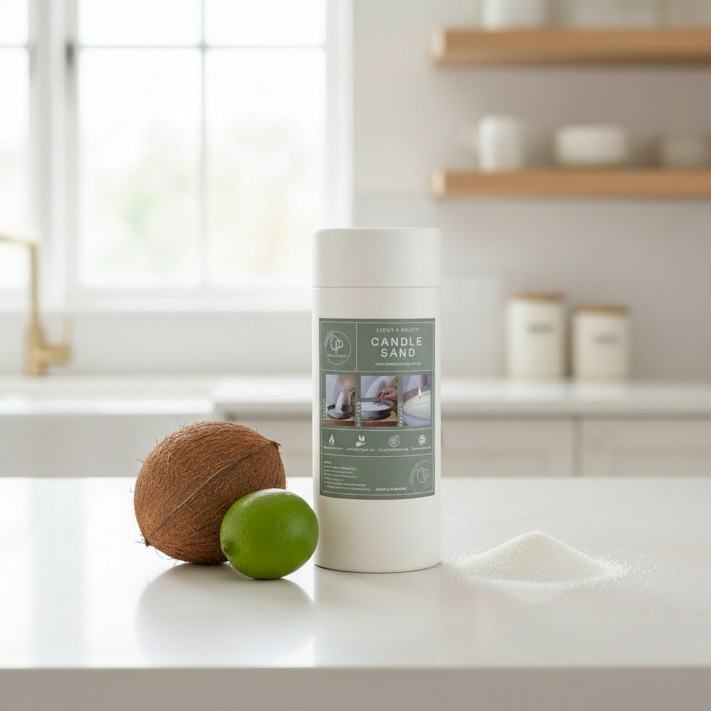 All concrete pieces are hand-poured, sealed and waterproofed, making them suitable as catch-all trays or decorative surfaces when not styled with CandleSand. The addition of our 500g CandleSand allows candlelight to softly reflect against the white surface and gold detailing, creating warmth without overpowering your space.